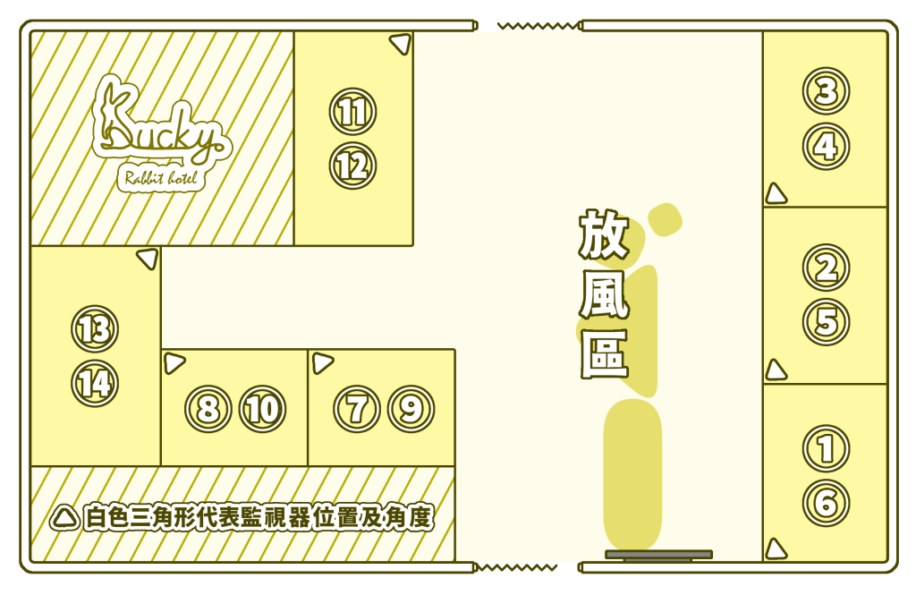 每間房間皆設有獨立編號,並對應專屬監視器,家長可即時查看貓咪在房內的狀況,清楚掌握入住空間,提升住宿透明度與安心感。