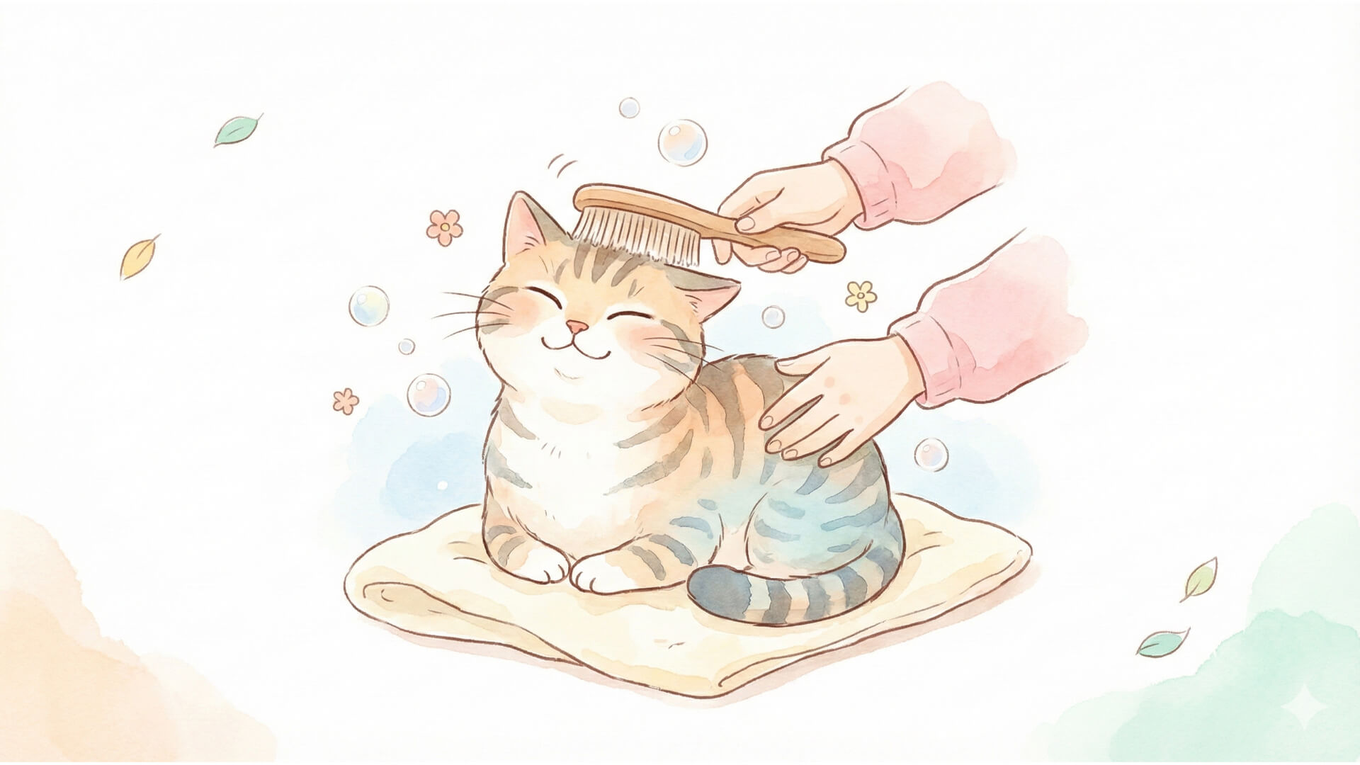並協助處理打結毛髮。過程中依貓咪個性與狀況彈性調整,不強迫、不造成額外壓力,讓貓咪在放鬆狀態下完成整理,維持清潔與良好狀態。